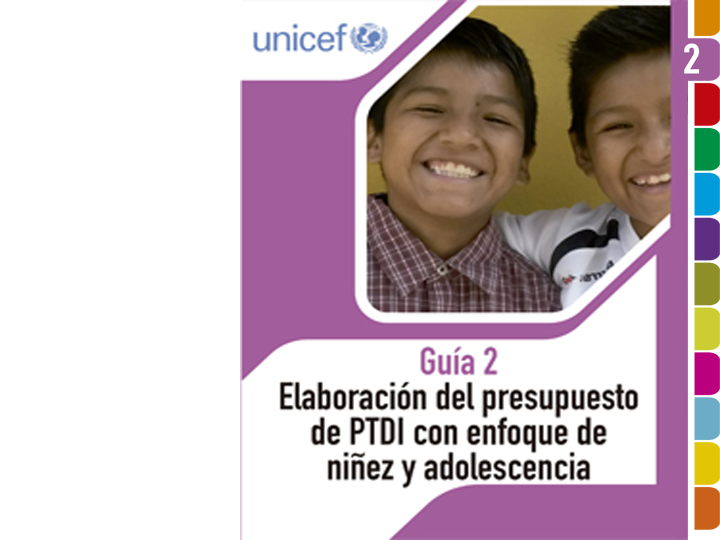 La Guía 2 ayuda a estimar presupuestos de niñez y adolescencia en el nivel subnacional. Es una propuesta para incorporar el enfoque de derechos de la niñez y adolescencia en el proceso de elaboración del presupuesto plurianual del PTDI.