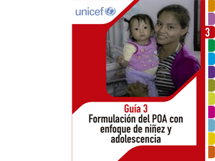 La Guía 3 brinda orientaciones metodológicas y operativas para el proceso de formulación del Plan Operativo Anual (POA) de manera que la planificación de corto plazo refleje una programación basada en el enfoque de derechos humanos de la niñez y adolescencia, con visión de integralidad e intersectorialidad.