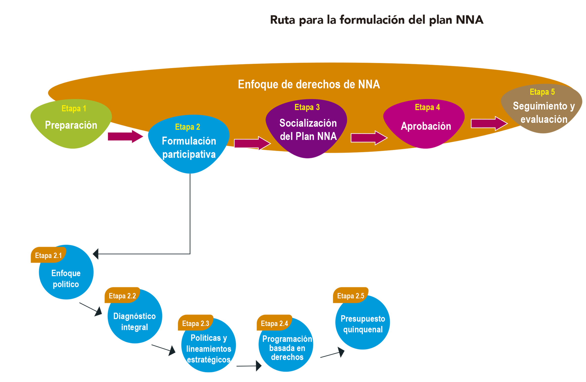 La Guía 5 orienta el proceso de formulación de los planes de niñez y adolescencia a nivel subnacional, generando incidencia en los procesos de planificación y presupuesto institucional a partir de una visión integral y bajo el enfoque de derechos de la niñez y adolescencia. Contribuye al proceso de cuantificación y análisis del gasto público en favor de este sector.